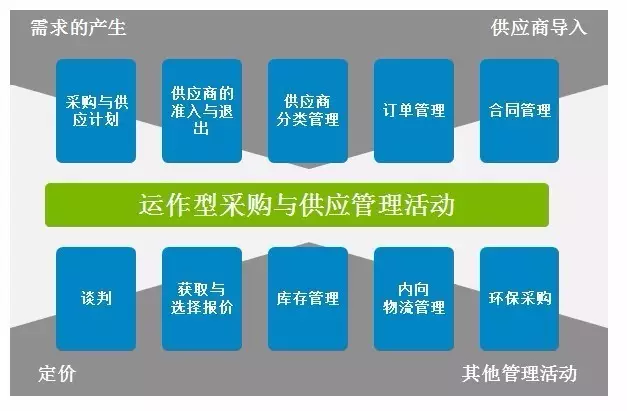 我们可以将世界级采购组织的工作内容分为两大块:战略型采购与供应管理活动、运作型采购与供应管理活动,它们各自所包含的具体内容如图所示。