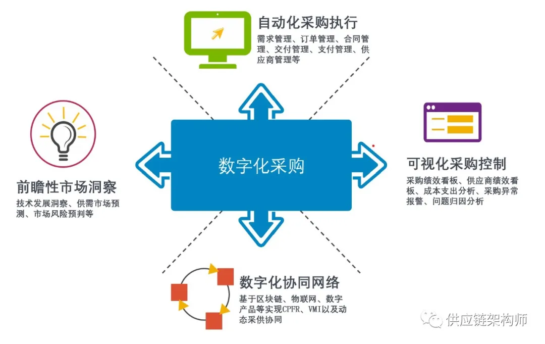 当然,今天的采购管理者也迎来了数字化转型升级的重大机遇。人工智能、区块链、物联网、云计算等新技术的出现,让我们能够通过数字化采购摆脱传统采购所遇到的信息不透明、效率不高、反应迟钝等一系列问题。