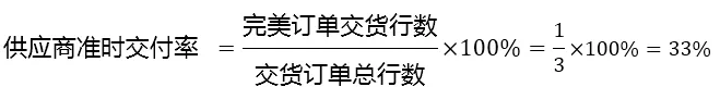 供应商准时交付率这一指标是衡量供应商对客户的交付业绩水平。具体的计算方法主要有三种。