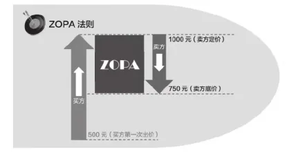 例如,在谈判过程中,供应商的价格从1000元开始往下降,采购方的价格从500元开始往上升。如果双方能进入ZOPA(即750~1000元这个价格区间),双方就有可能达成协议;如果双方未能进入ZOPA,谈判就会以失败告终。这就是所谓的ZOPA法则。