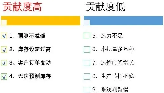 还有一些其他因素也会导致库存出现,如产销协同决策机制失调、无法预测未来库存、小批量多品种、安全库存设定过于保守、系统刷新太慢都会造成库存不准或库存过高的问题。