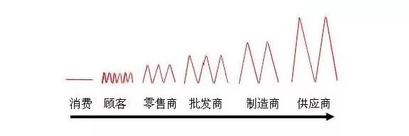 经济学上有一个术语叫“牛鞭效应”,是指供应链上的一种需求逐级放大现象,是信息流从最终客户端向原始供应商端传递时,无法有效地实现信息共享或者为了应对不确定性,人为的预留余量而使得信息扭曲并逐级放大,导致了需求信息出现越来越大的波动,此信息扭曲的放大作用在图形上很像一个甩起的牛鞭,因此被形象地称为牛鞭效应。