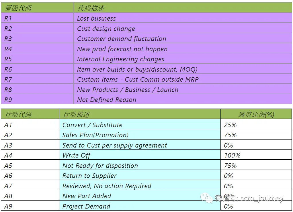 呆滞(Obsolete):过去一年时间内没有任何消耗,并且未来1年也没有需求的物料。
